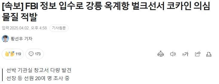 [속보] FBI 정보로 코카인 의심 물질 적발 근데 주인이 누구인지..