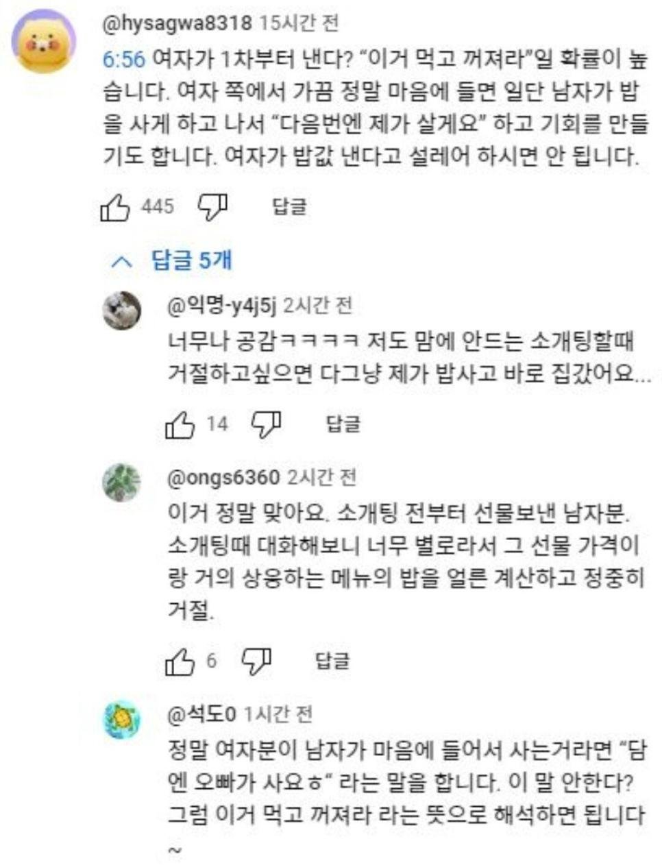 첫 만남에 밥을 사는 여자의 마음