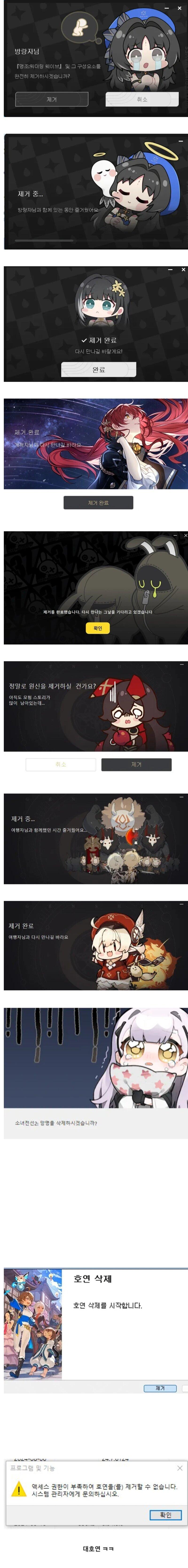 게임을 삭제할때 나오는 메세지들