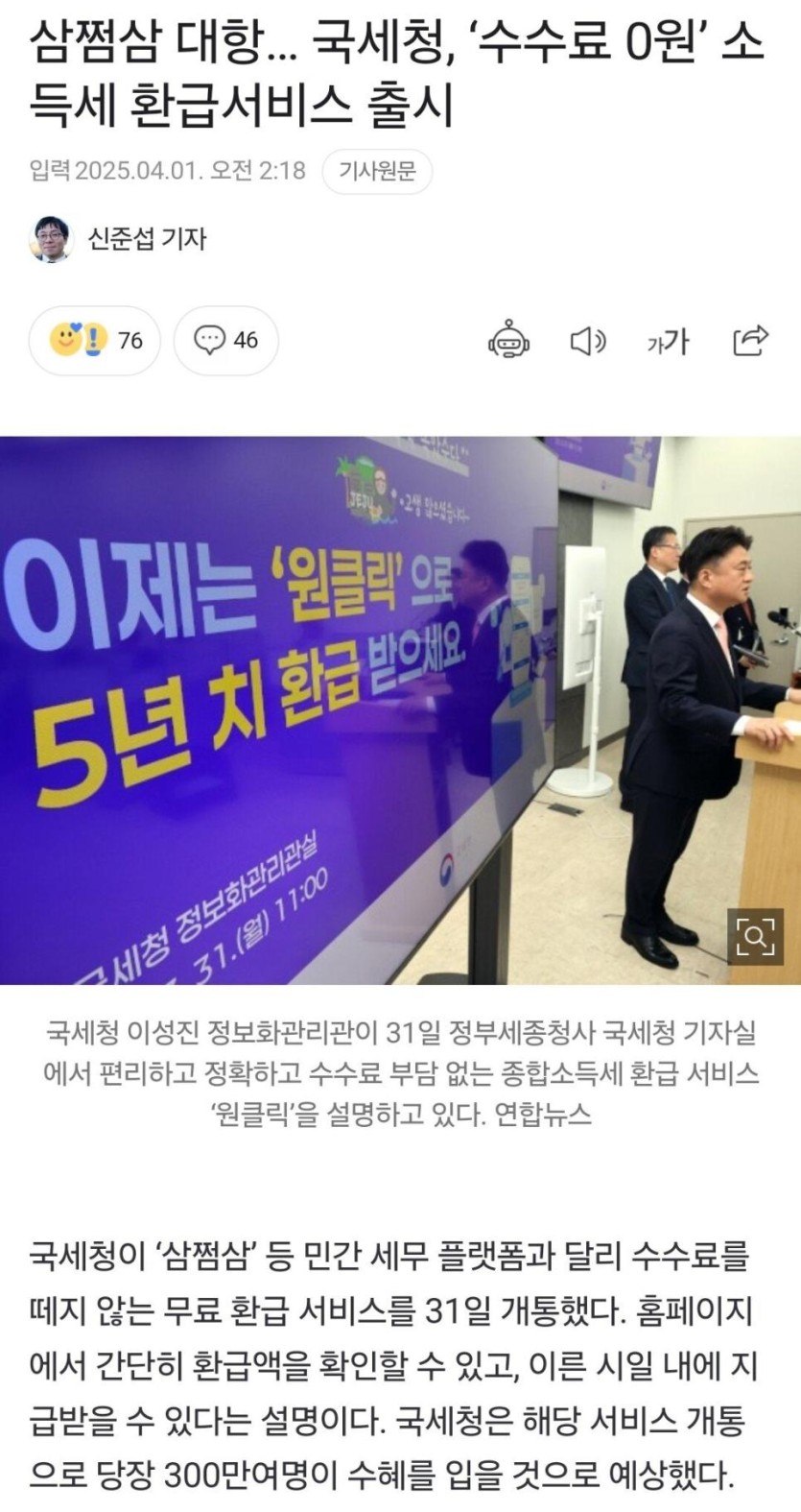국세청, 삼쩜삼 저격용 무료 환급 서비스 출시