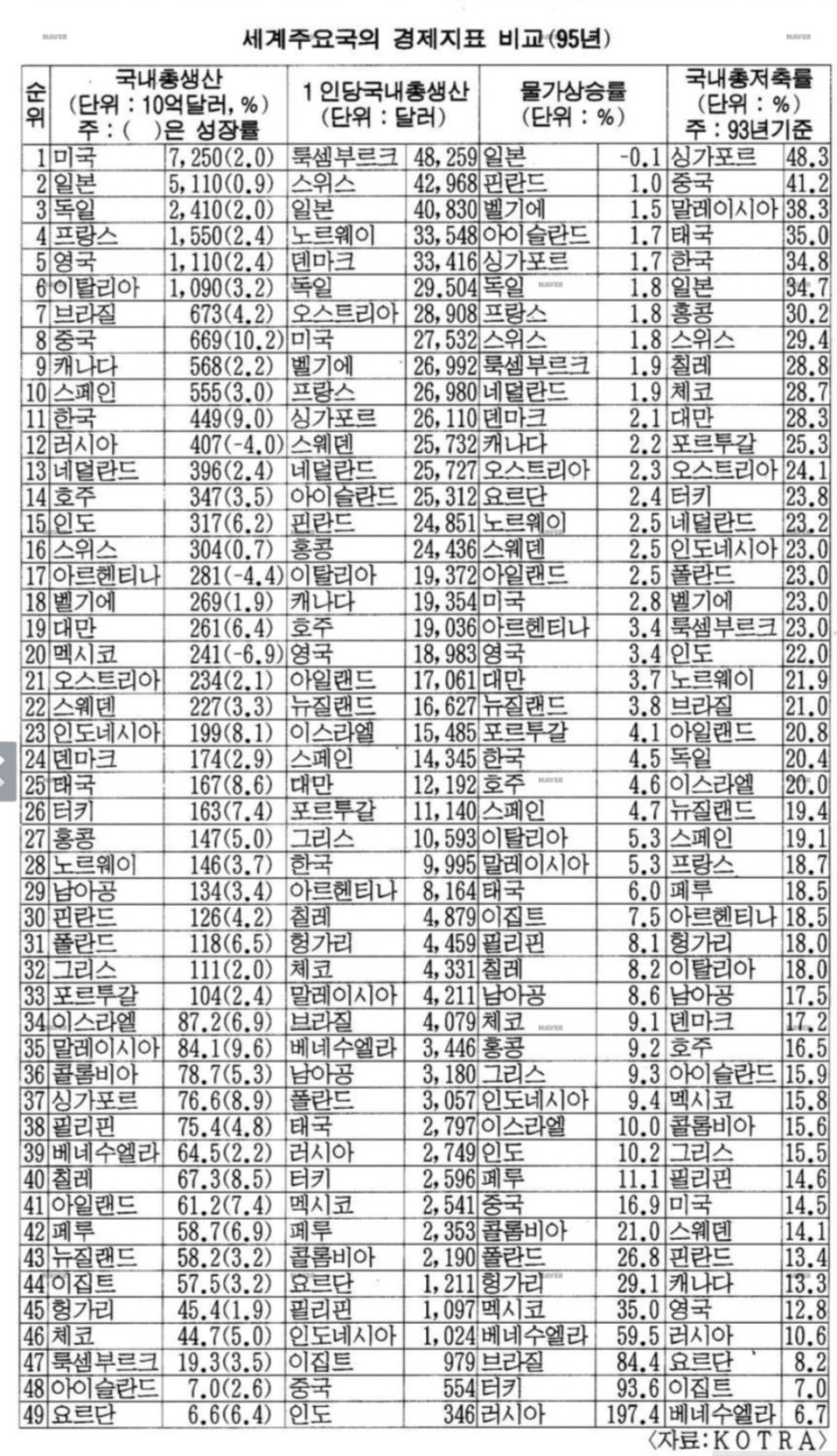 '한강의 기적'이라 불리며 IMF 외환 위기 이전까지