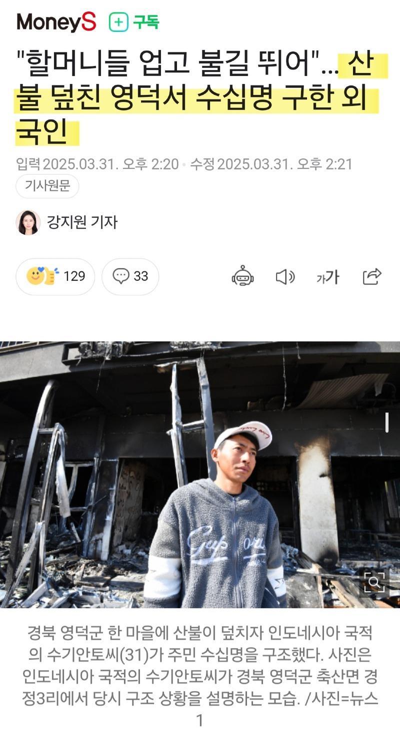 산불 현장 영덕에서 할머니 업고 뛰며 수십명 구한 외국인