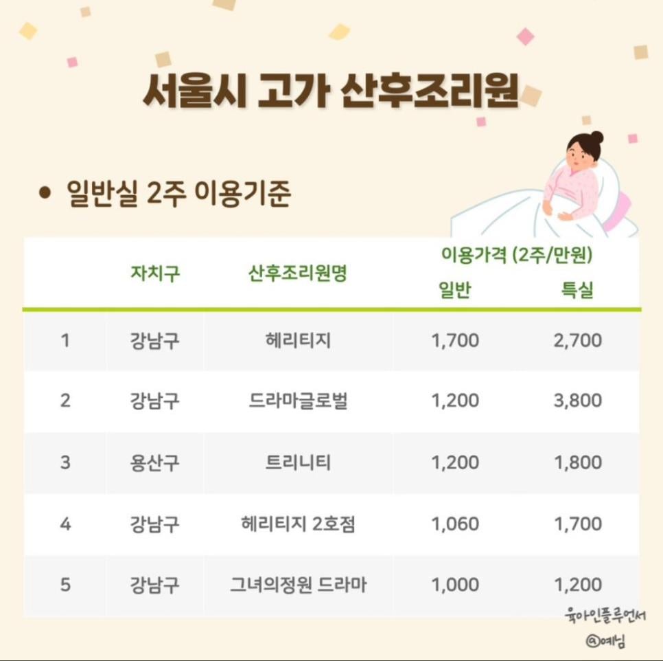 강남 산후조리원 2주 이용 가격