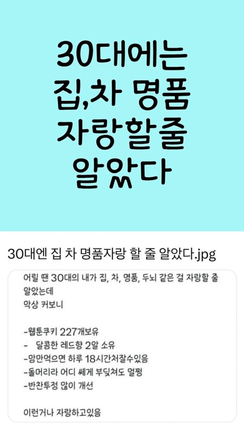 30대에는 집, 차, 명품 자랑할 줄 알았다.....jpg