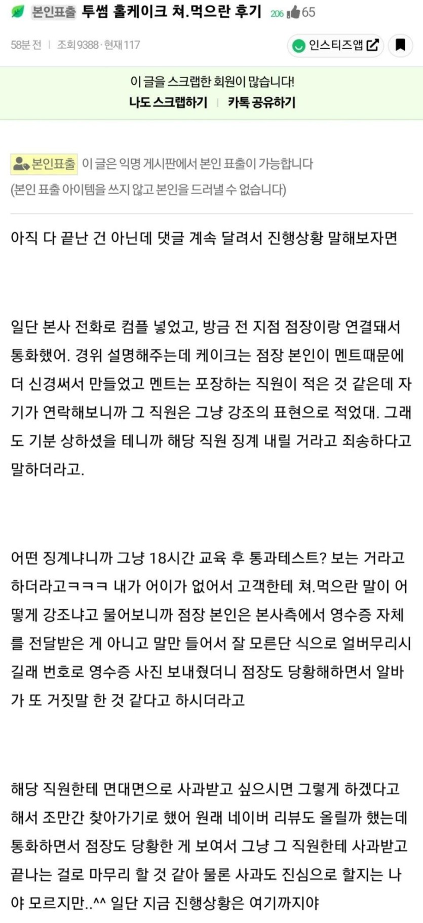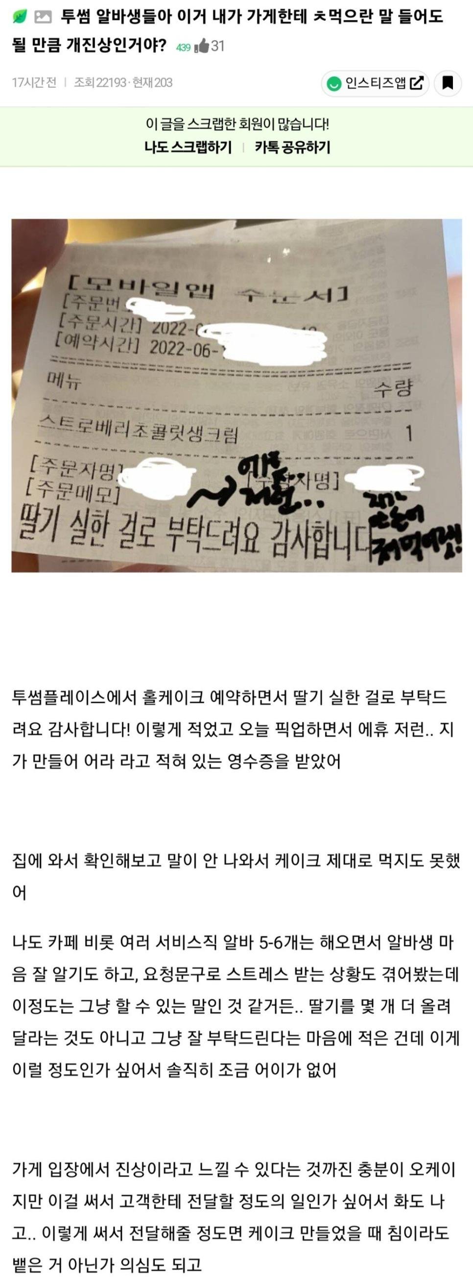 투썸 알바생 논란