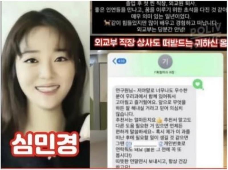 심우정 딸 심민경을 떠받드는 외교부 과장 rh1 0 177 0 2025.03.31 04:00 연구원님 저야말로 너무나도 우수한 분이우리과에서 함께 있어줘서 고마웠고즐거웠어요. 앞으로 무엇을 하든잘 해내실거라고 믿어 의심치 않습니다추천서는 얼마든지요추천서 말고도 다른 도움 필요한 일이있으면 언제든 편하게 말씀하세요혹시 제가 이 과를 떠난후에 필요할 일이생기면 그땐 010-××××-×××× 개인번호로 연락줘도 돼요(물론 그 전에 꼭 또 봅시다!)따뜻한 연말연시 보내시고 항상 건강하고요!ㅡㅡㅡㅡㅡㅡ가관이네요. 0