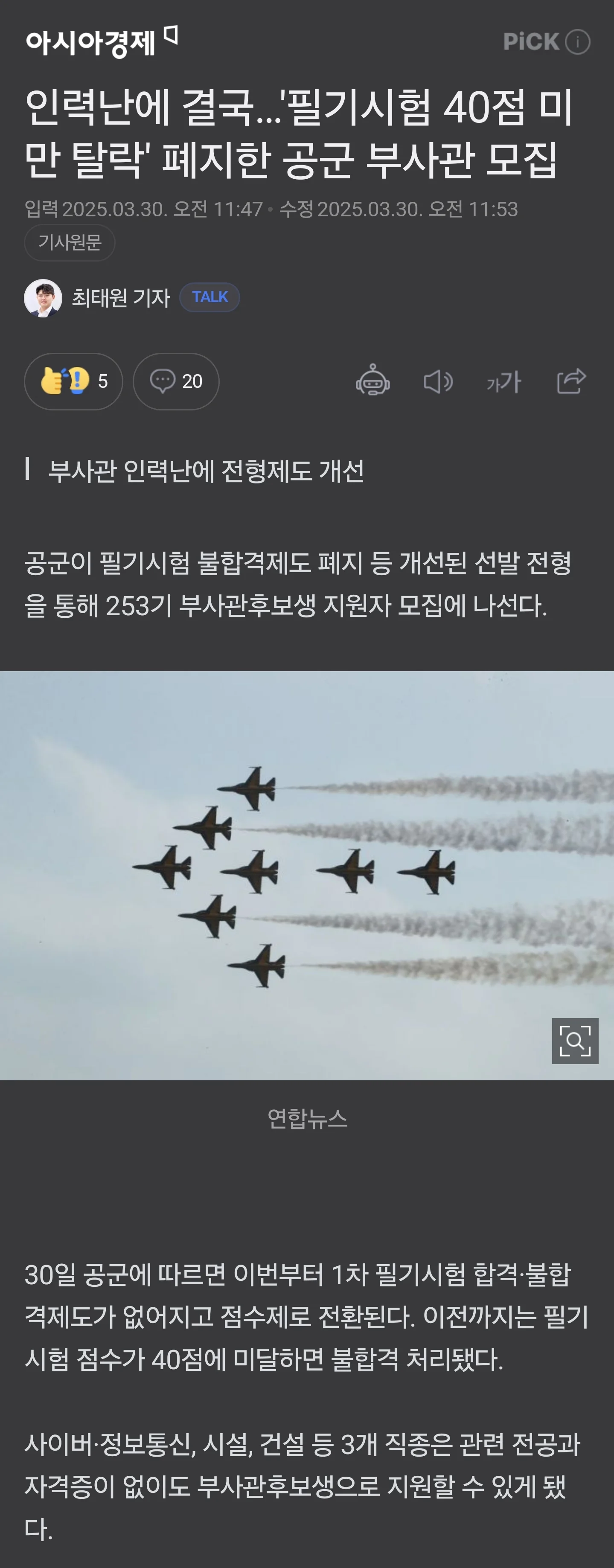공군 40점미만 탈락제도 폐지