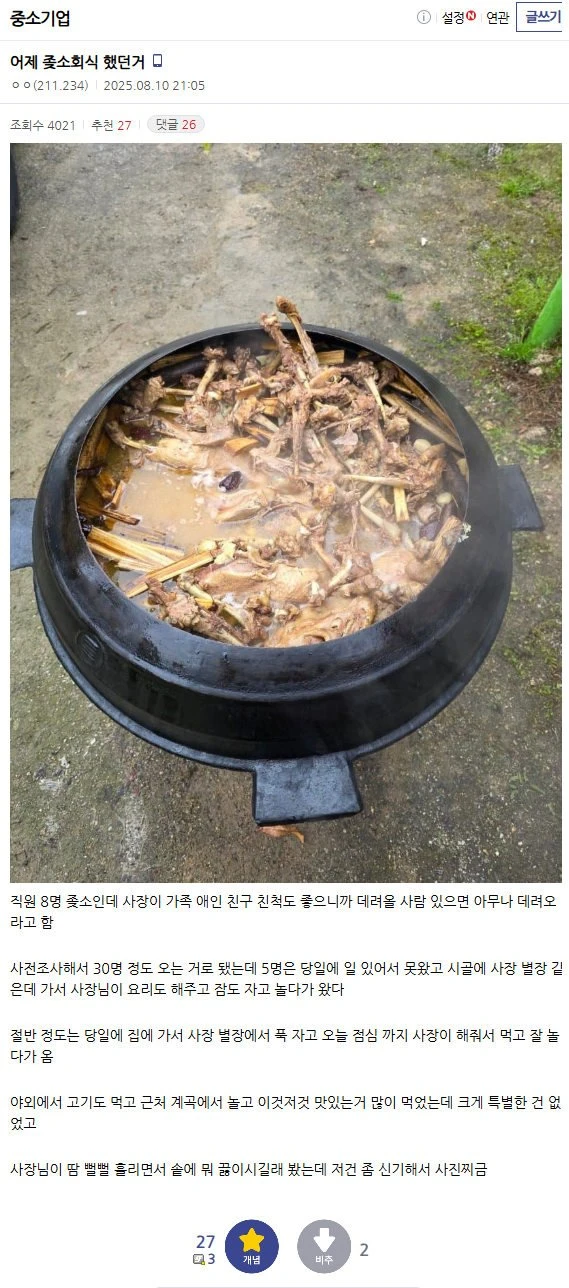 가족같은 중소기업의 회식
