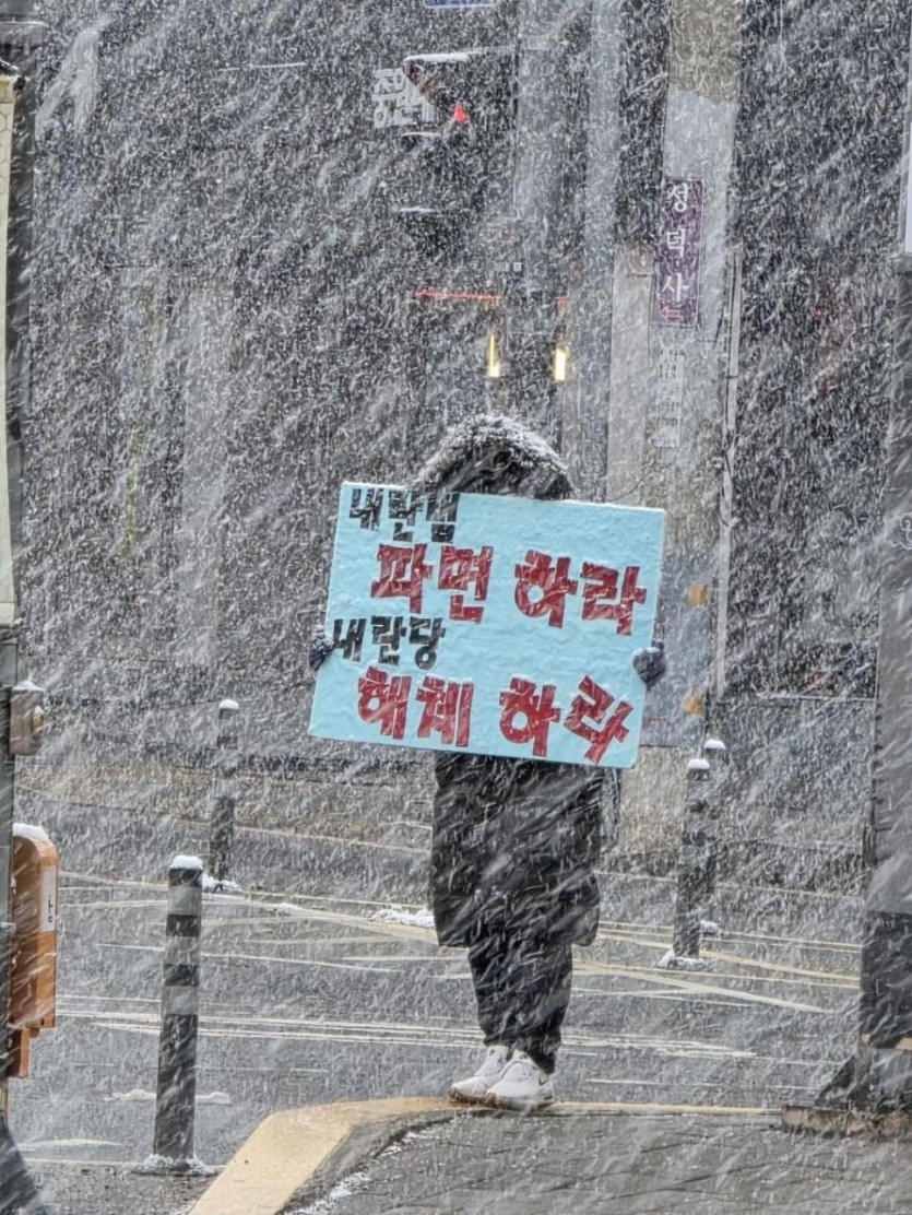 올 겨울 마지막 눈 내리던 날,홀로 키세스단
