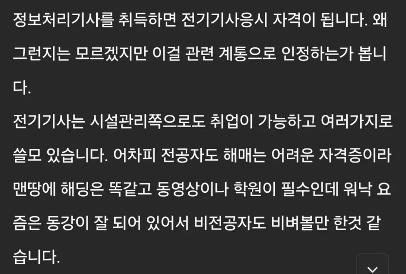 GPT도 오히려 정보처리기사 대신 건설기사가 낫다고 하는 수준까지 와버렸다.