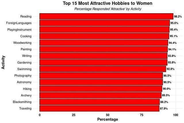 미국 여자들이 싫어하는 남자 취미 순위 rh1 0 85 0 2025.03.30 18:16 좋아하는 순위 1. 독서 2. 외국어공부 3. 악기연주 4. 요리 5. 목공 6. 도공 7. 글쓰기 8. 원예 9. 수영 10. 사진 싫어하는 순위 1. manosphere 여혐 남초 인터넷커뮤 2. 도박 3. 포르노 4. 인터넷커뮤 논쟁 싸움 5. funko 피규어 6. 마리화나 7. 클럽 8. 담배 9. 화장 10. 애니메이션 시청 11. 유희왕같은 카드놀이 12. 술 13. 논쟁 14. 코스프레 15. 만화책 미국 여자들이 싫어하는 남자 취미 순위 0