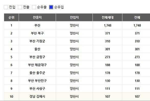최근 인구대비 인구증가율 1위 도시 rh1 0 234 0 2025.03.30 18:17 부산옆에 위치한 위성도시 양산시는 최근 6개월간 5천명에 육박할정도로 인구수대비 인구증가율이 가장큰 도시다그럼이 6개월간 양산으로 유입된 인구는 어디서 왔을까? 아래 사진을 보자순유입 탑 10중 8곳이 부산이다. 그렇다 부산옆에서 부산인구를 야금야금 빨아먹고 있었던 것양산은 지하철이 무려 17년전에 개통(부산2호선)되었는데 특광역시 ,서울인근 제외 젤 빠른 개통연도를 자랑한다신도시들이 들어서고 내년 양산 단독전철이 개통예정이므로 인구증가는 계속될 것으로 보임 최근 인구대비 인구증가율 1위 도시 0
