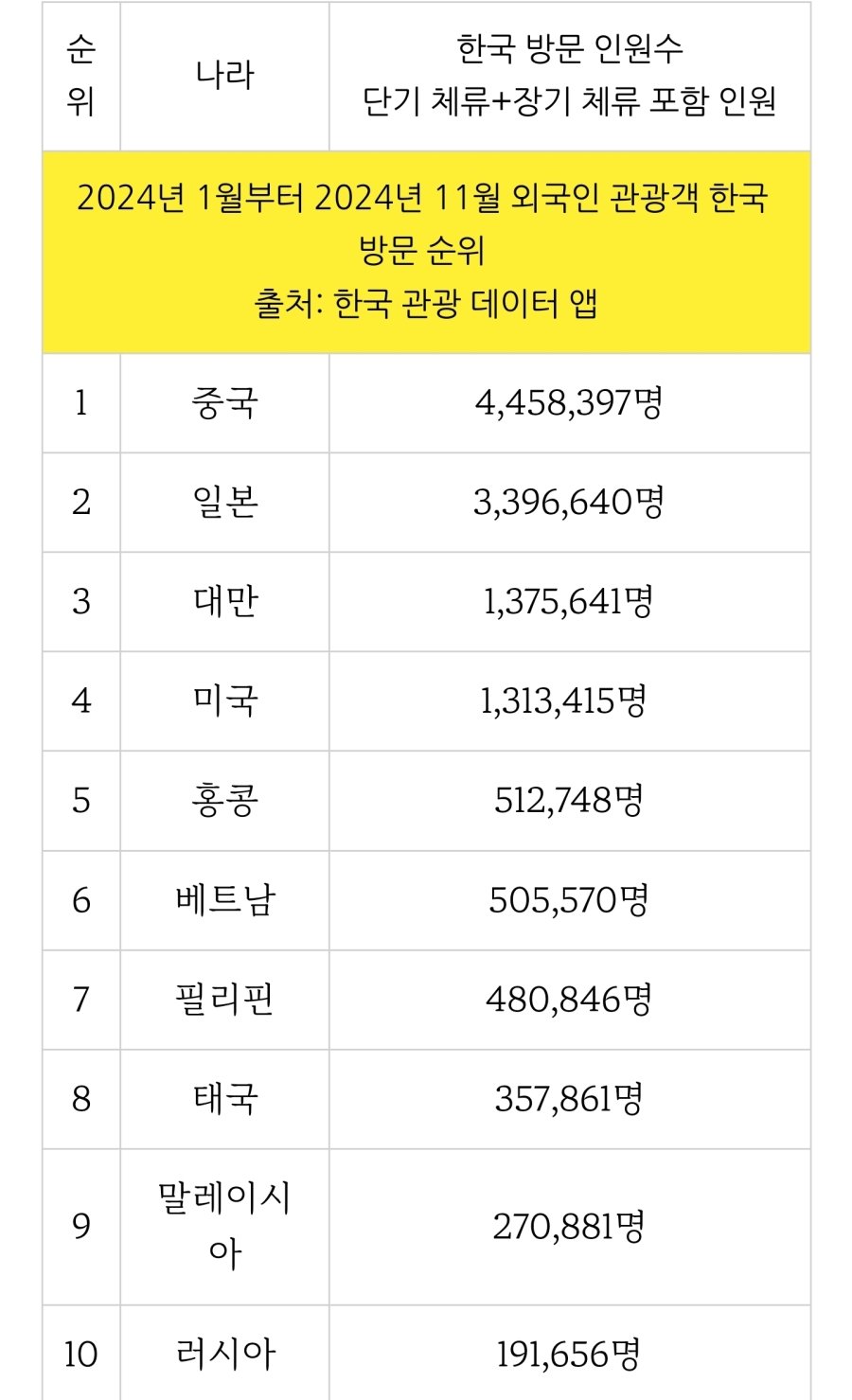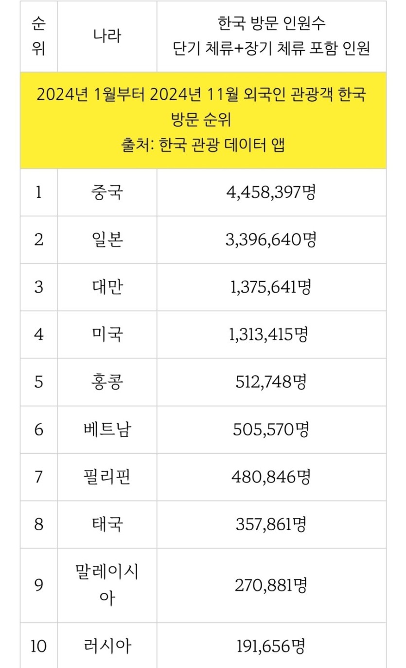 한국에 가장 많이 여행 온 나라들 rh1 0 208 0 2025.03.30 15:15 중국과 일본은 역시 예상한 순위네요 대만도 많이 오는 군요 베트남 태국 필리핀은 한국 좋아하는군요 한국에 가장 많이 여행 온 나라들 0