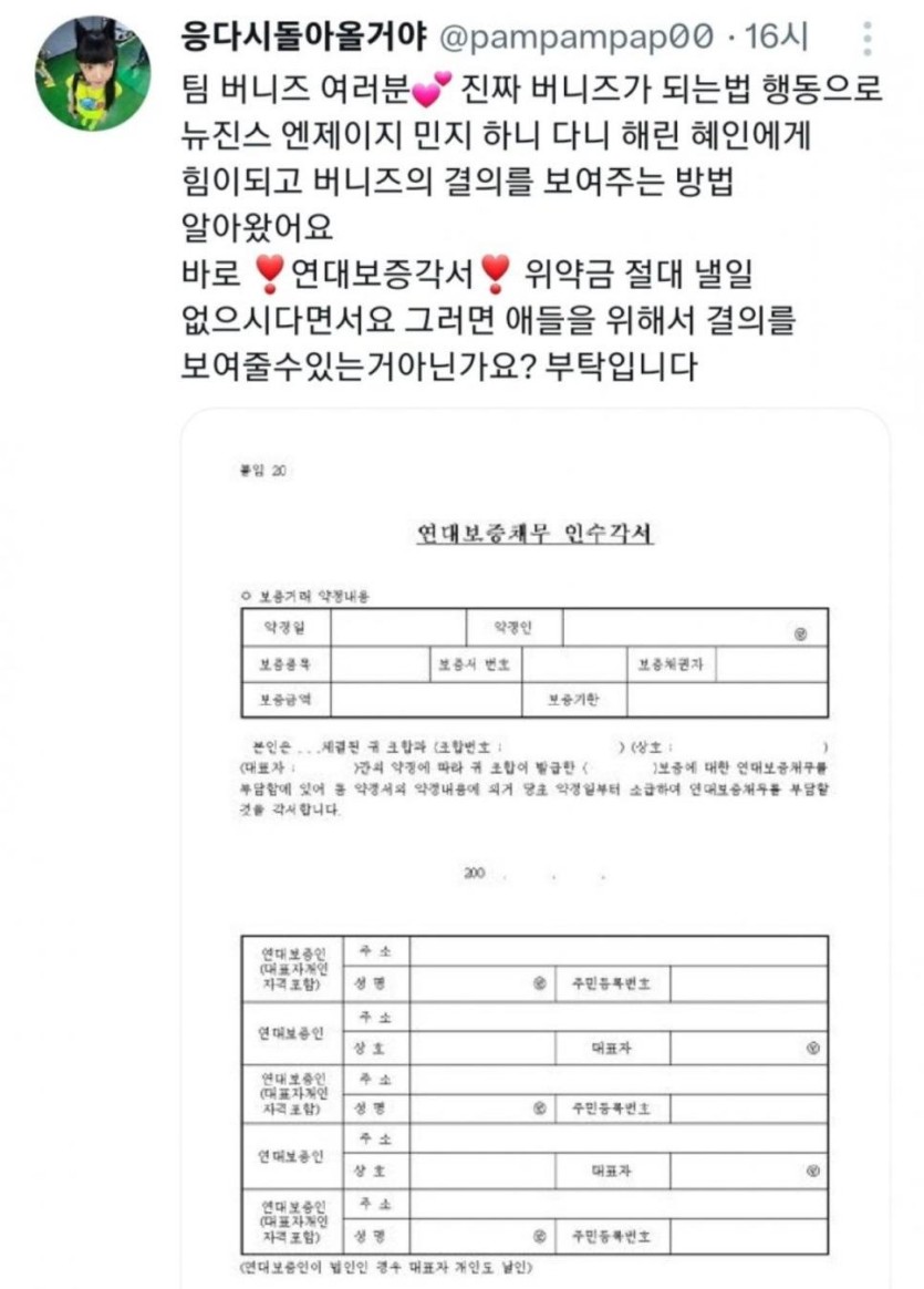 팀버니즈에게 연대보증각서를 요구하는 하마스들 rh1 0 85 0 2025.03.30 15:30 찐팬으로서 당연히 뉴진스와 함께 하겠다는 팀버니즈에게하마스들이 비열한 공격을 진행중 그 누구보다 뉴진스를 위해서 불철주야 고생하는팀버니즈에게 비열한 공격을 자행하는 하마스들은반성해야함 0