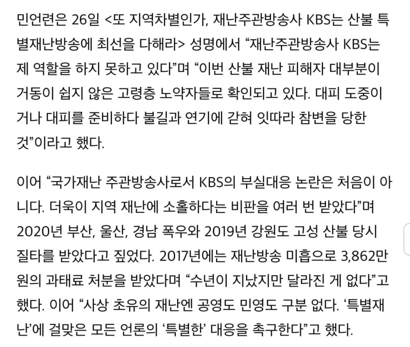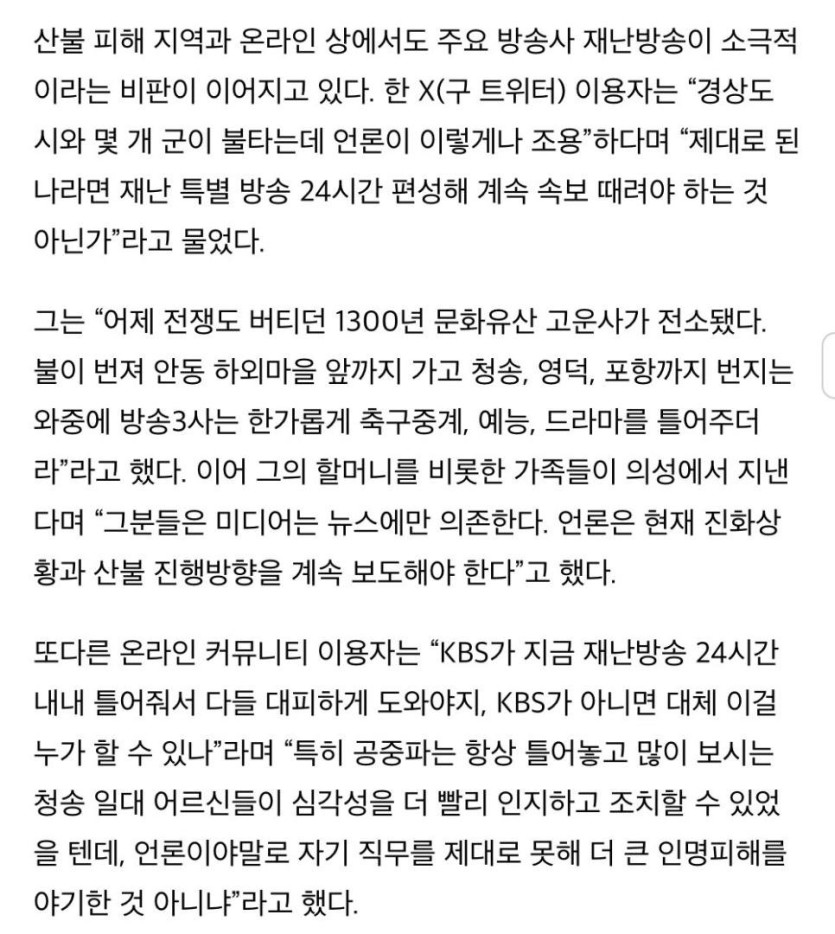 산불 재난방송 미흡 비난 쇄도한 KBS, 공식 입장 발표 rh1 0 140 0 2025.03.30 11:30 https://youtu.be/k7SfNjEL-KE??? ???? = = = = = = = = = = 자사 뉴스로 자화자찬시청자 상대로 기싸움 하는 중 0