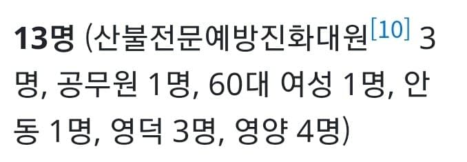 산불 사망자 수 현 시점 13명으로 급증