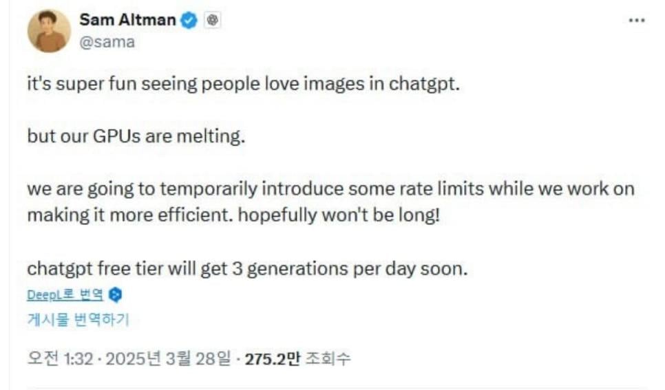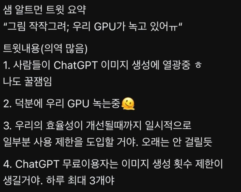 알트먼이 GPT 그림생성 작작좀 하라고 함