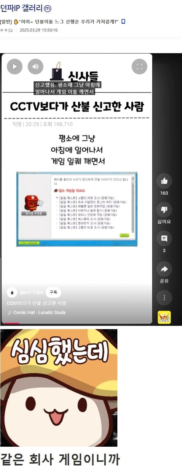 얼마전 CCTV로 화재신고한 던파유저 근황