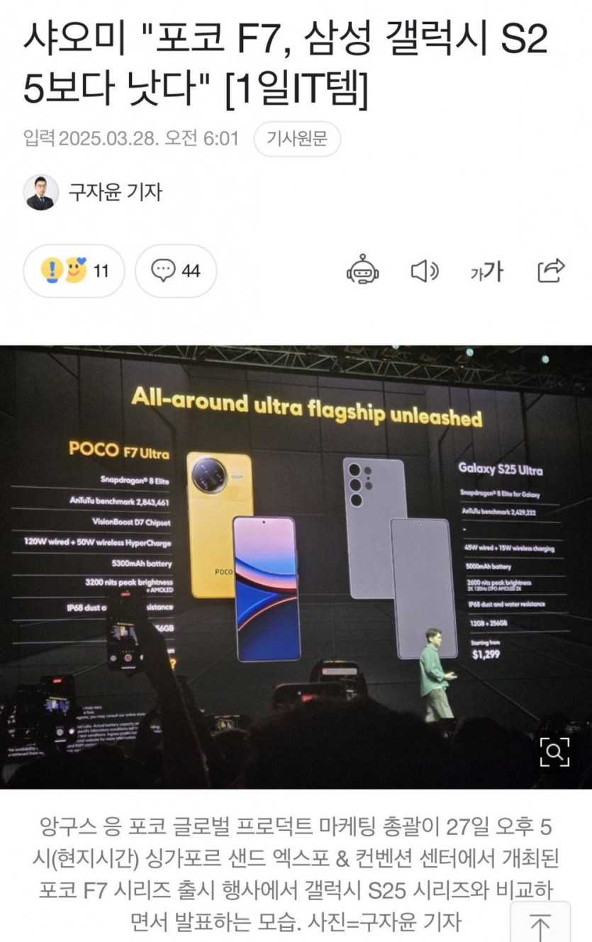 샤오미 "포코 F7, 삼성 갤럭시 S25보다 낫다"