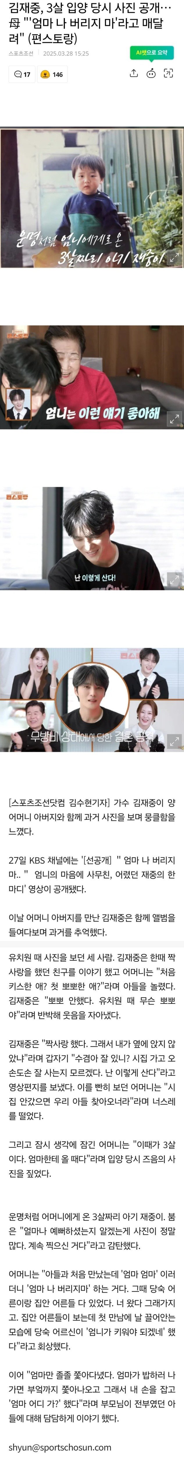 김재중, 3살 입양 당시 사진 공개