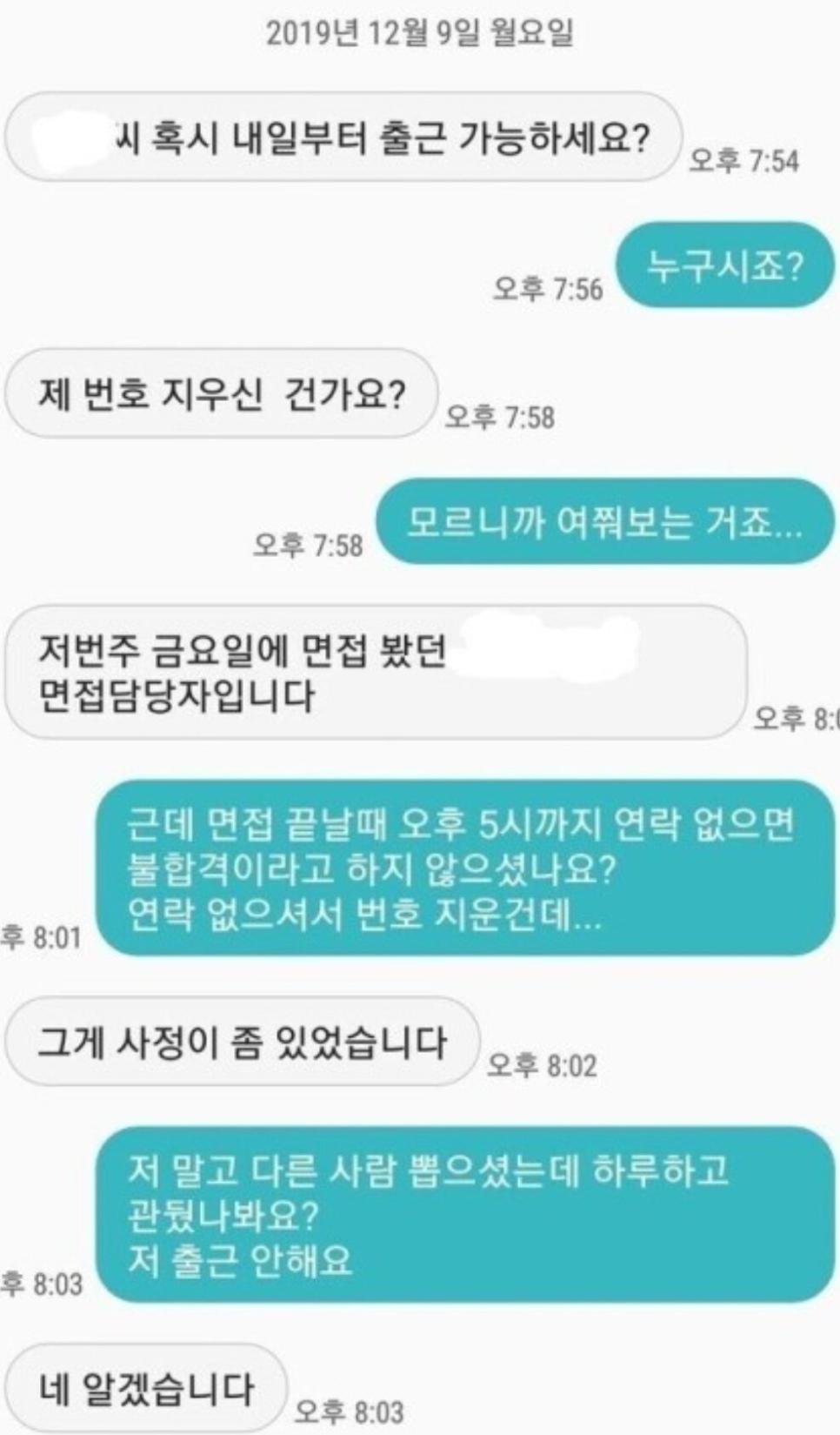 면접에서 떨어뜨려놓고 며칠 뒤에 출근해달라는 면접관 때문...