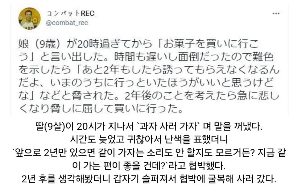9살 딸이 과자 사러 가자며 하는 말