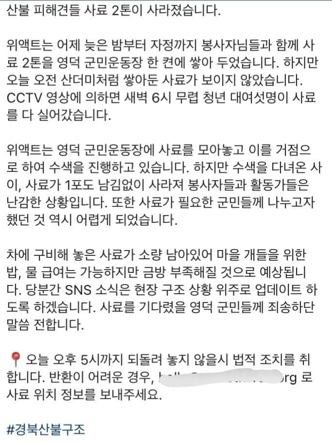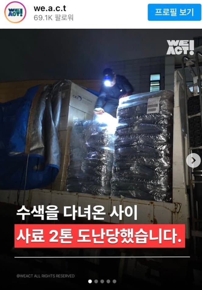 산불 피해견 사료 2톤 누가 훔쳐감 ㄷㄷ