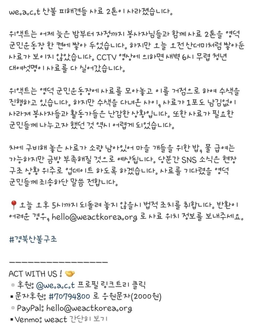도둑이 영덕군 운동장에 있던 사료 2톤 훔쳐감