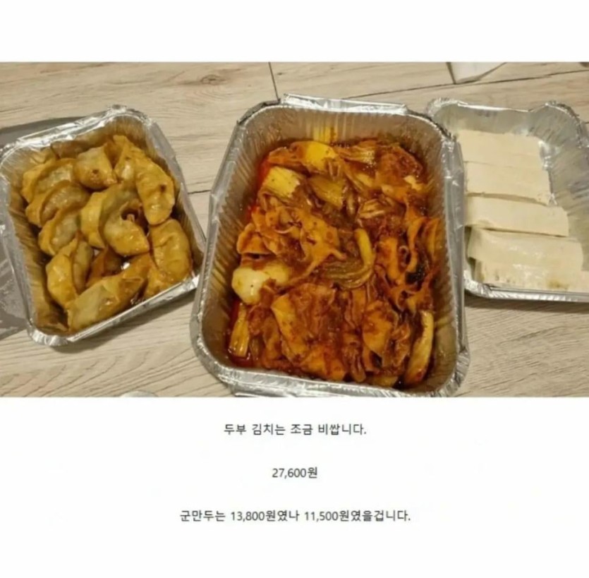 16,109원 짜리 냉면, 27,600원 두부김치 포장상태