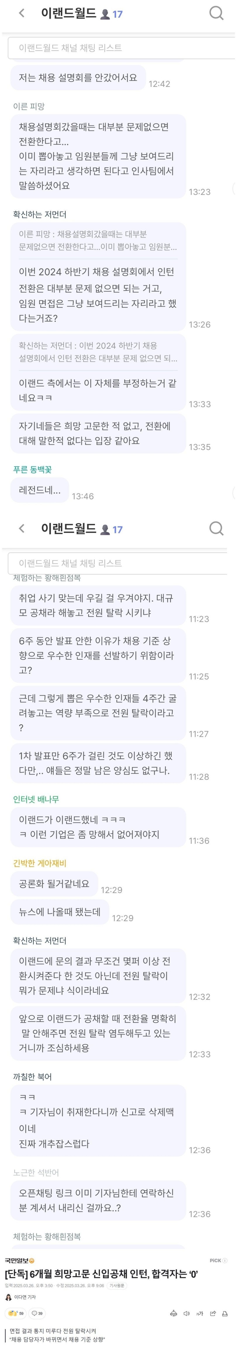 피해자들 안타까운 이랜드패션 채용
