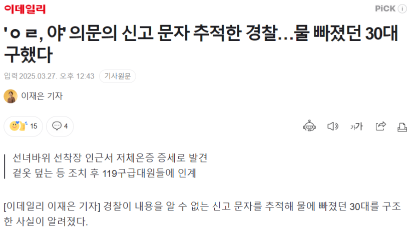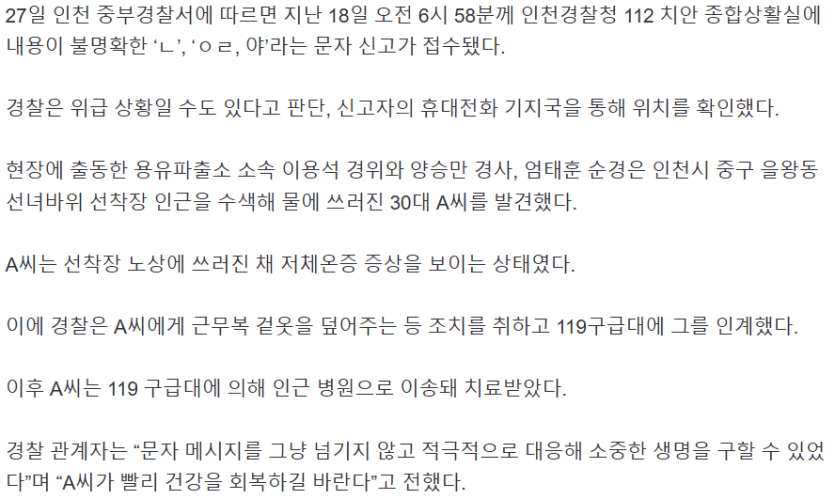 'ㅇㄹ, 야' 의문의 문자 추적한 경찰… 30대 구했다