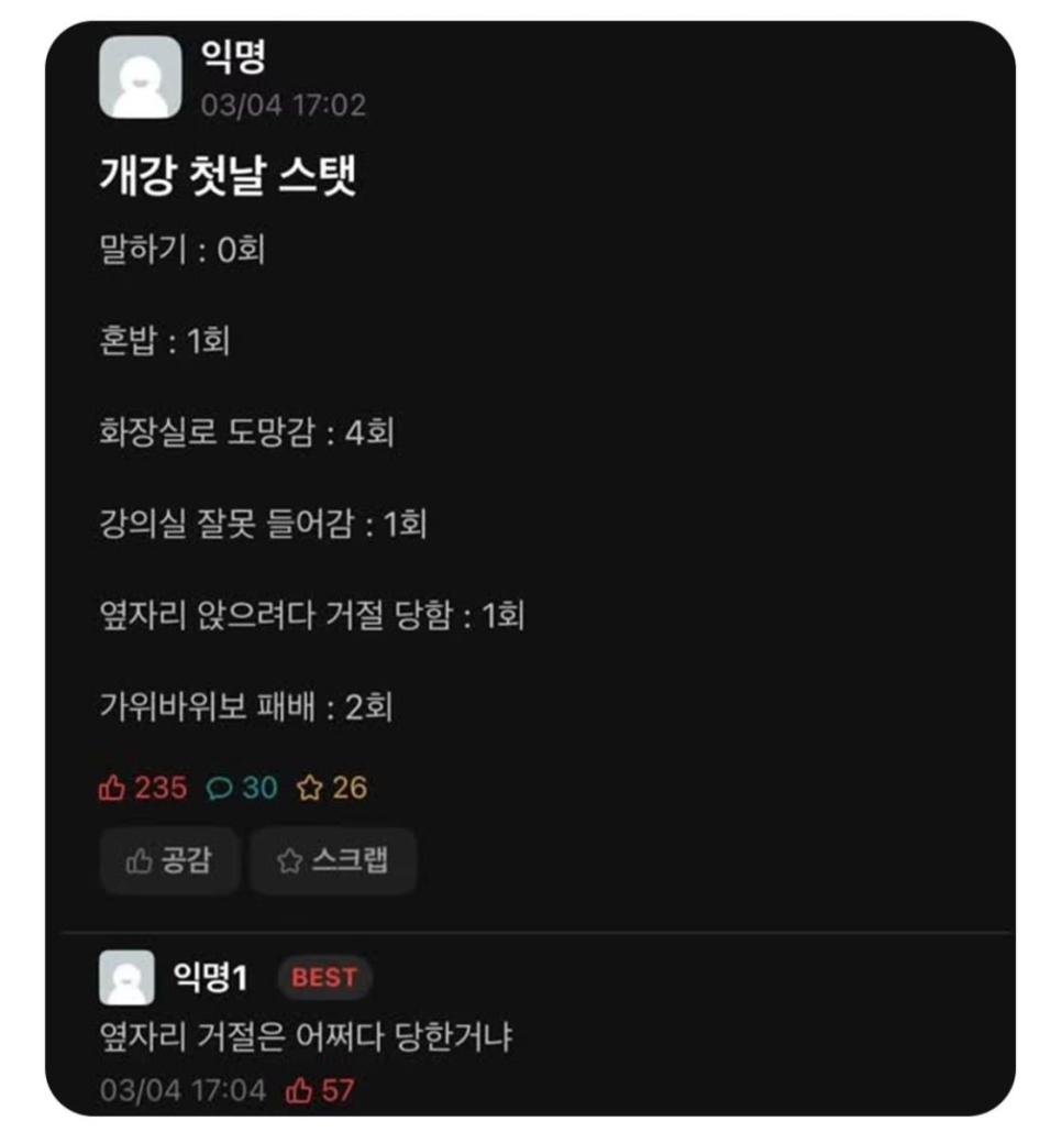 개강 첫날 후기