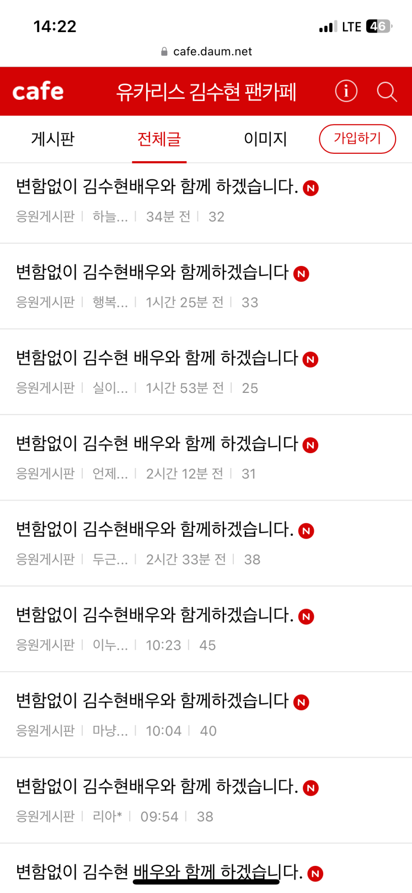 현시점 김수현 팬카페 유카리스 근황