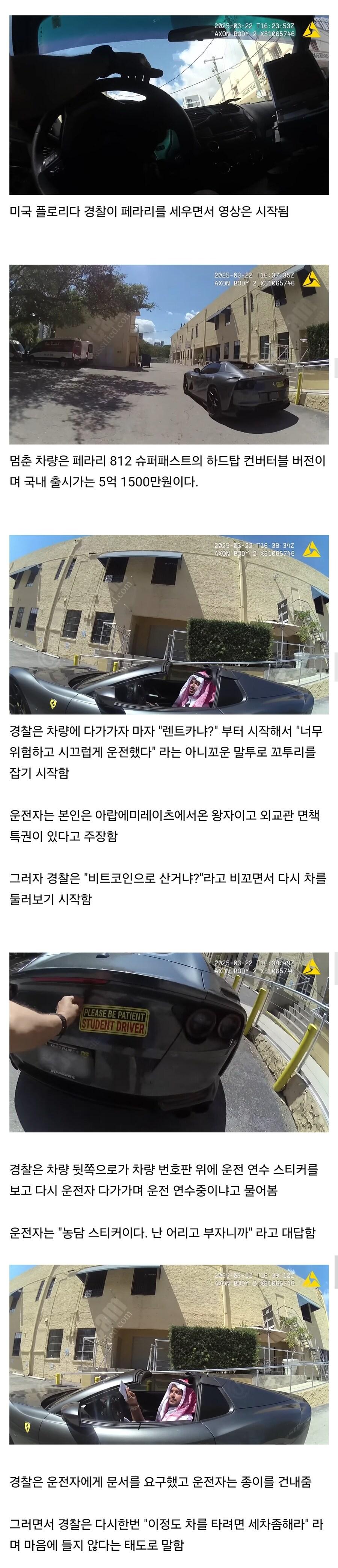 미국에서 난리난 경찰한테 뺨 맞은 페라리탄 아랍왕자