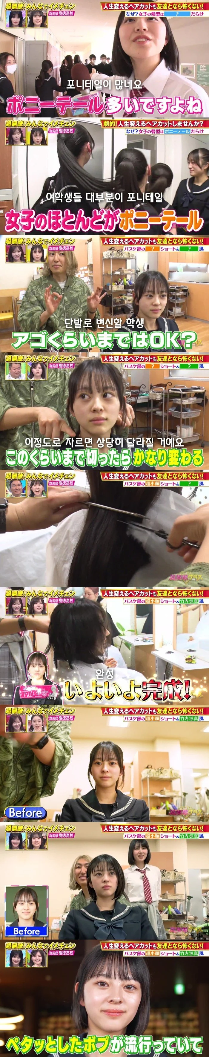 단발 머리하는 일본 여고생