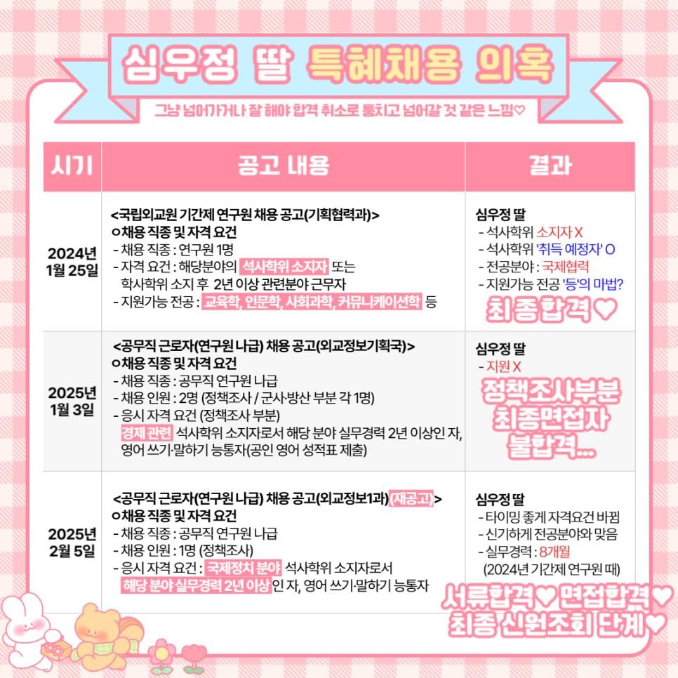 (펌)심우정 딸 특혜채용 의혹 정리