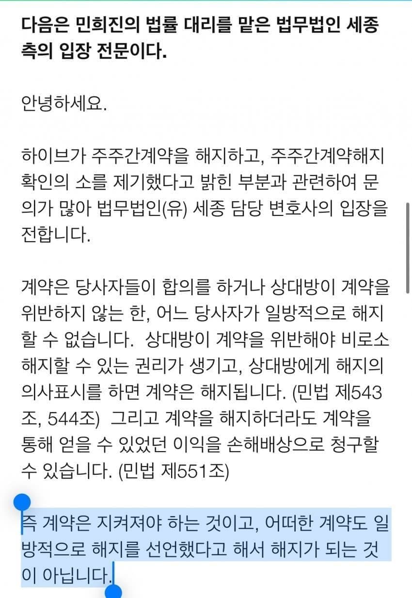 지극히 맞는말을 한 민희진의 법무법인 세종