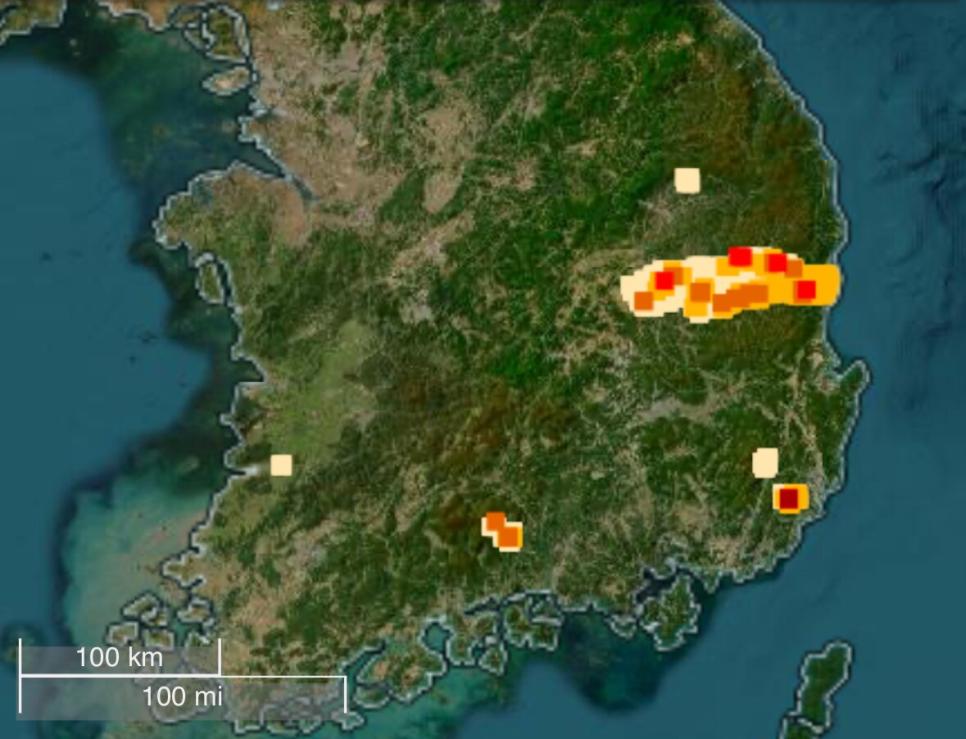 NASA 실시간 우리나라 산불 위성 사진 rh1 0 132 0 2025.03.26 11:45 https://firms.modaps.eosdis.nasa.gov/map/#t:tsd;m:advanced;d:24hrs;l:fires_goes_Him8,fires_goes_Met11,fires_goes_Met9,fires_goes_all,fires_goes_g16,fires_goes_g16frp,fires_goes_g18,fires_goes_g18frp,country-outline,earth;@130.3,56.9,6.5z 0