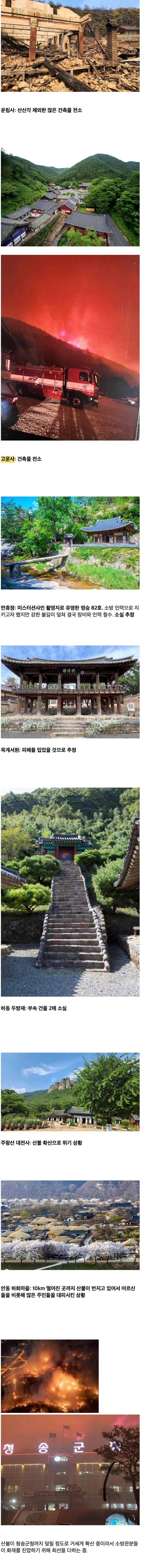 이번 산불로 소실된 문화유산들
