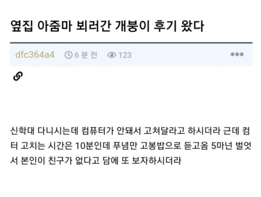 옆집 아줌마 집에 컴퓨터 가르쳐주러간 개붕이..