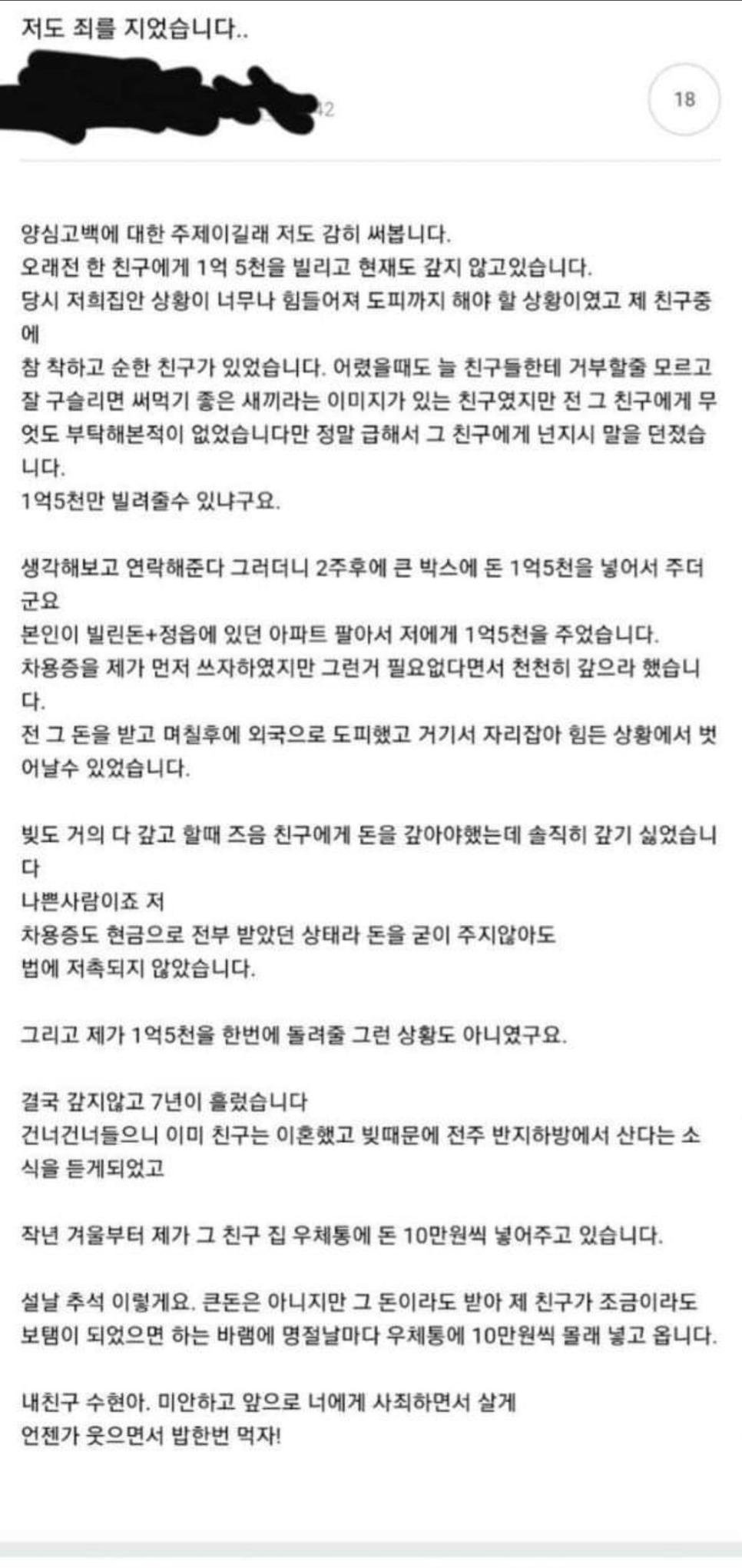친구에게 1억 5천만원 빌리고 갚지 않는 씹새끼