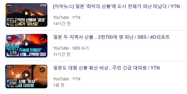 일본도 산불 크게난듯