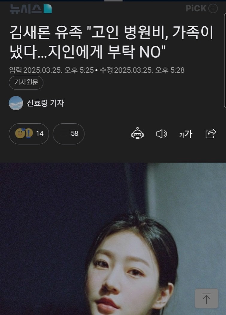https://v.daum.net/v/20250325114250168김새론 유족, 고인 병원비 가족이 냈다