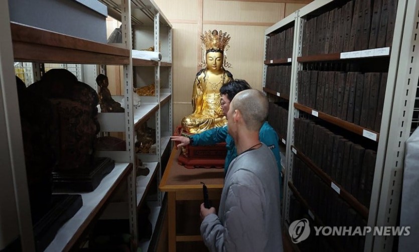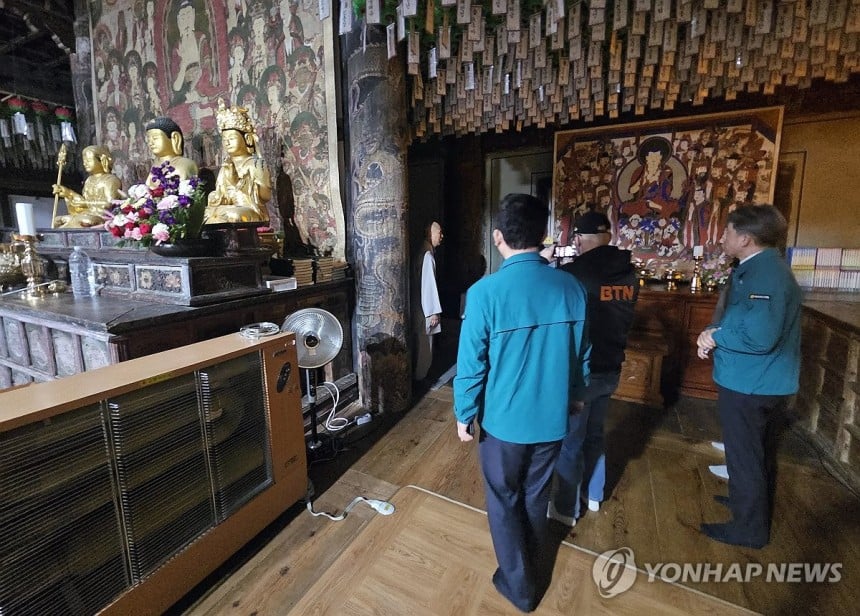 의성 산불 확산에 세계유산 안동 봉정사 비상 rh1 0 281 0 2025.03.26 00:15 (안동=연합뉴스) 천경환 기자 = 경북 의성에서 시작한 산불이 안동까지 확산한 25일 최응천 국가유산청장이 봉정사를 방문해 목조관음보살좌상을 살펴보고 있다. 2025.3.25 의성 산불 확산에 세계유산 안동 봉정사 비상 0