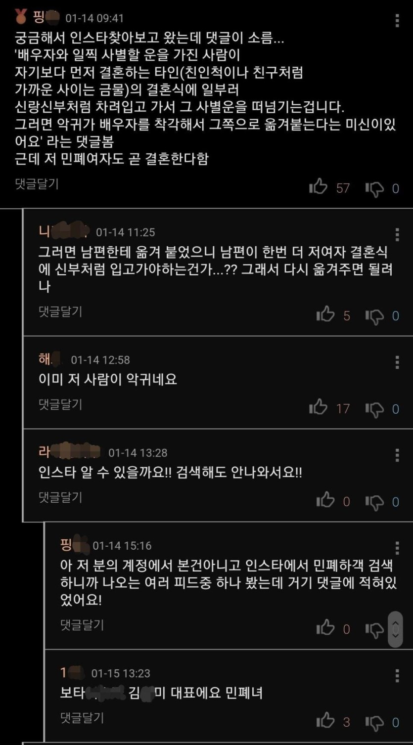 결혼식 개판치는 방법.jpg rh1 0 256 0 2025.03.25 16:30 추가 정보1.남편 엄마친구 딸이고 사업때문에 한두번 본 적있다 함.가까운사이 ㄴㄴ2.저 하객 여자분도 17일에 결혼한다 함.3.사진기사는 남편 옆에 바로있어서 절친인줄알고 그냥 찍었다 함. 0