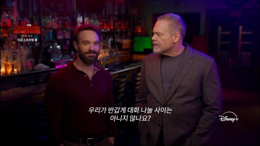 건배사하는 데어데블과 킹핀 현실 케미 rh1 0 135 0 2025.03.25 07:15 이번에 데어데블 새 시즌 디플에서 공개 중인데 데어데블이랑 킹핀 배우들 나와서 건배사도 해주네욬ㅋㅋ 실제로 한국팬들한테 하는 거라서 한국어로 ‘건배’ 외치는데 걍 동네 아저씨들ㅋㅋㅋ 현실 배우로 보니까 데어데블 눈 초롱초롱하니 귀여운 형이고 킹핀 배우는 원래 머리가 있으셨네요???!! 살 빠진 모습이랑 원래 목소리 들으니 완전 다른 사람 입니다 0