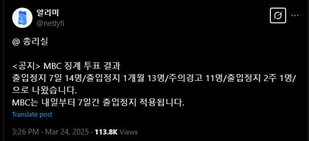 오늘 MBC 징계 투표 결과 ㄷㄷ.jpg