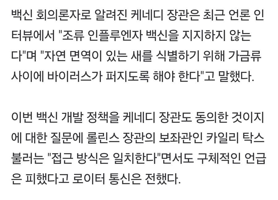 백신없이 조류독감 퍼트리고 거기서 살아남게 하자고 주장중