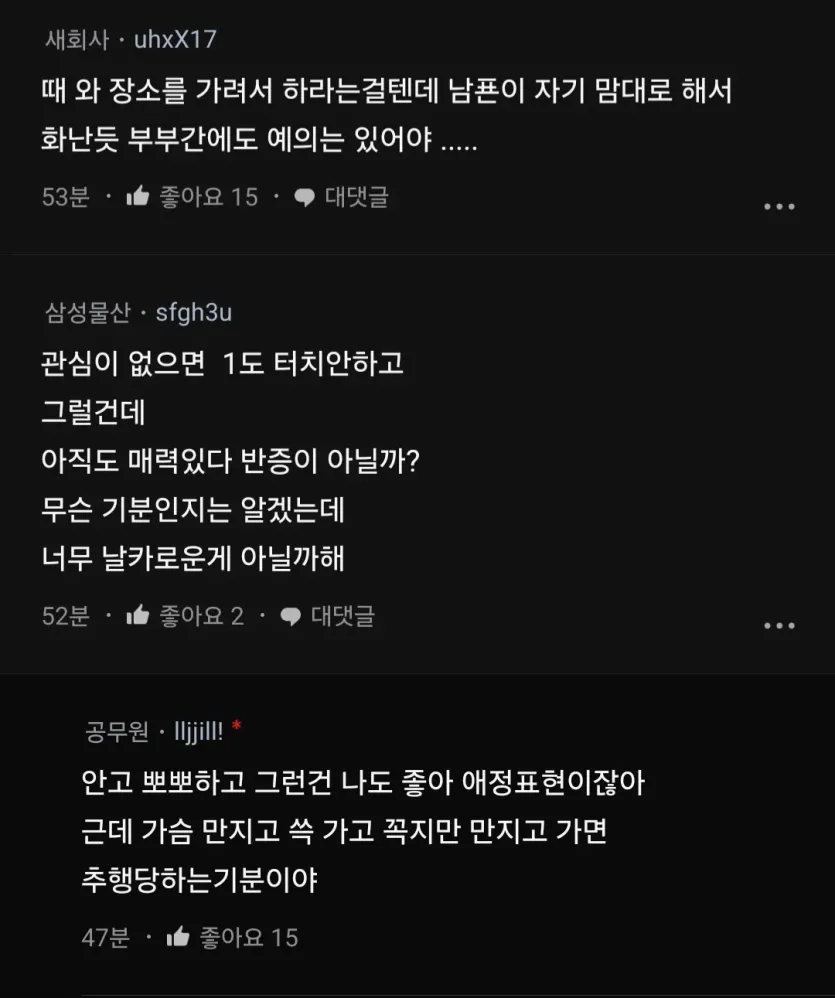 남편이 시도때도 없이 엉덩이 가슴 만져서 빡침