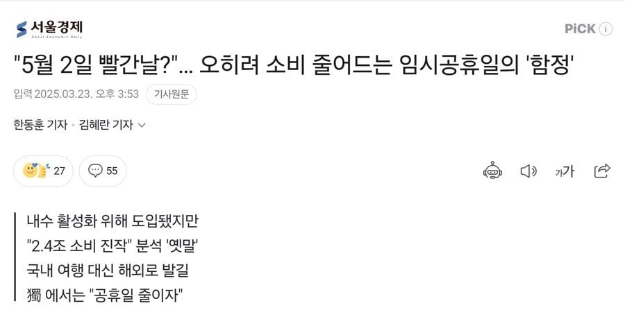 5월 2일 임시공휴일 떡밥이 돌자 나오는 소리